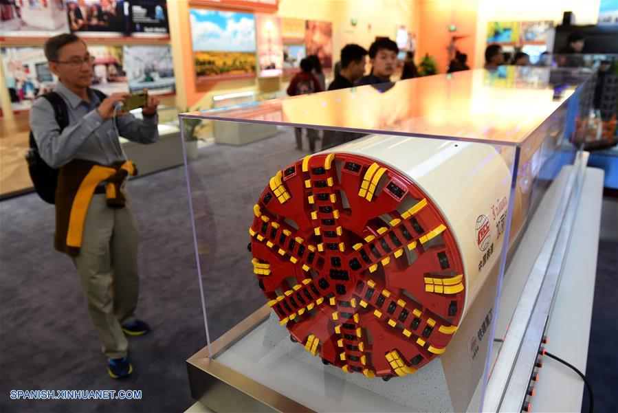 BEIJING, noviembre 14, 2018 (Xinhua) -- Un visitante toma fotografías de un modelo de una máquina tuneladora tipo escudo de desarrollo propio de China, en una importante exposición para conmemorar el 40 aniversario de la reforma y apertura de China, en el Museo Nacional de China, en Beijing, capital de China, el 14 de noviembre de 2018. La exhibición fue inaugurada el martes. (Xinhua/Shen Bohan)
