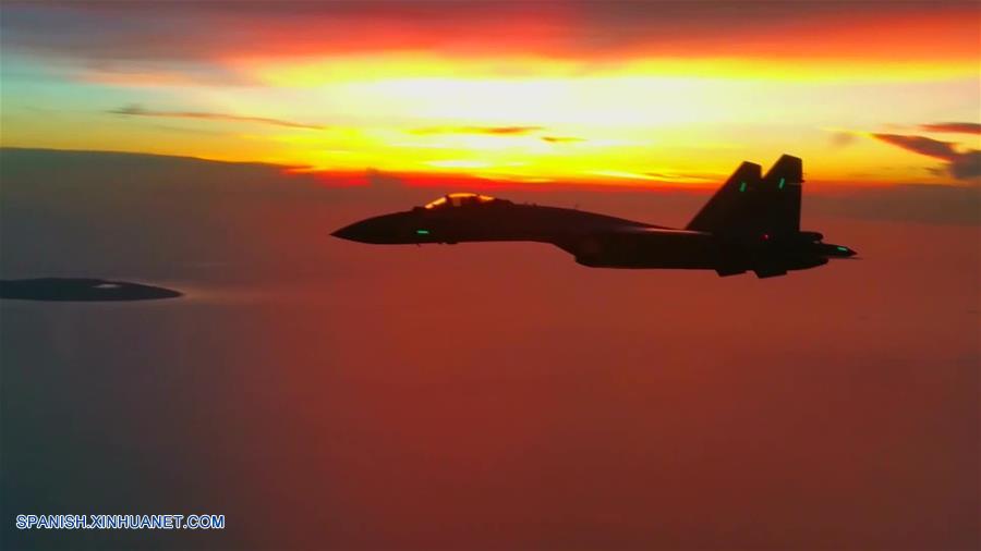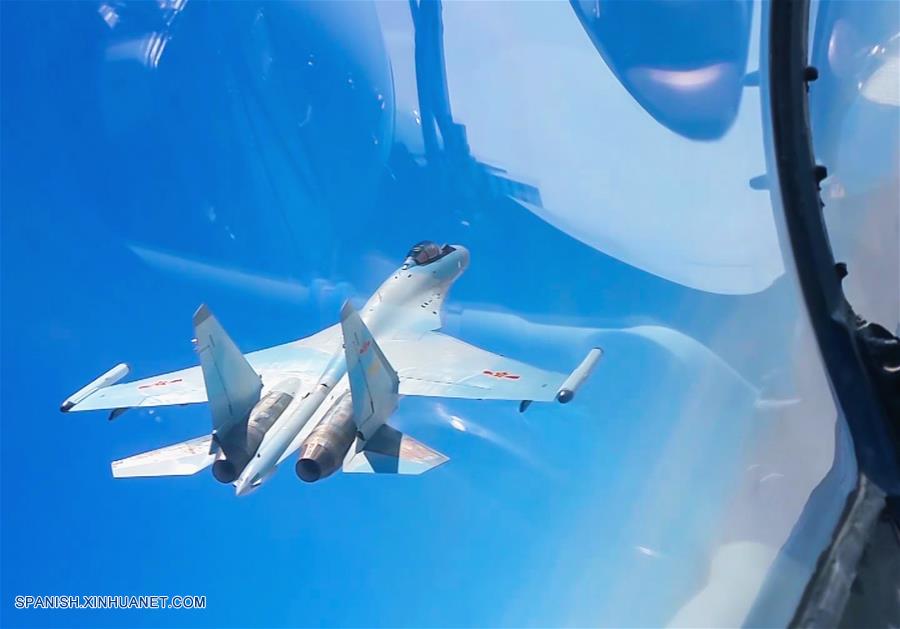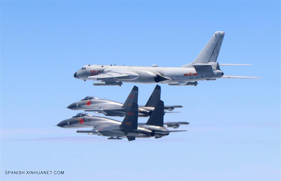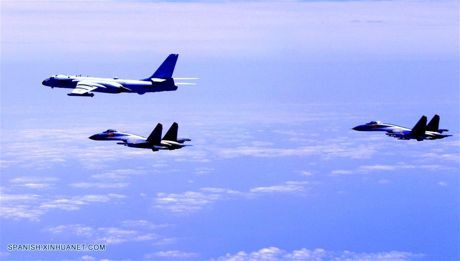 BEIJING, noviembre 14, 2018 (Xinhua) -- Imagen de archivo sin fechar de la Fuerza Aérea del Ejército Popular de Liberación (EPL) realizando una misión de patrullaje de combate conjunta, en el Mar Meridional de China. La Fuerza Aérea de China anunció una hoja de ruta para construir una fuerza aérea moderna más fuerte en tres pasos. La construcción de una fuerza aérea moderna más fuerte está acorde con el objetivo general de construir la defensa nacional y las fuerzas armadas, dijo el subcomandante de la Fuerza Aérea china, el teniente general Xu Anxiang, en conferencia de prensa en Zhuhai, en la provincia meridional de Guangdong, sobre la celebración del 69 aniversario del establecimiento de la Fuerza Aérea china llevada a cabo en Zhuhai, provincia de Guangdong, el 11 de noviembre de 2018. (Xinhua/Str)