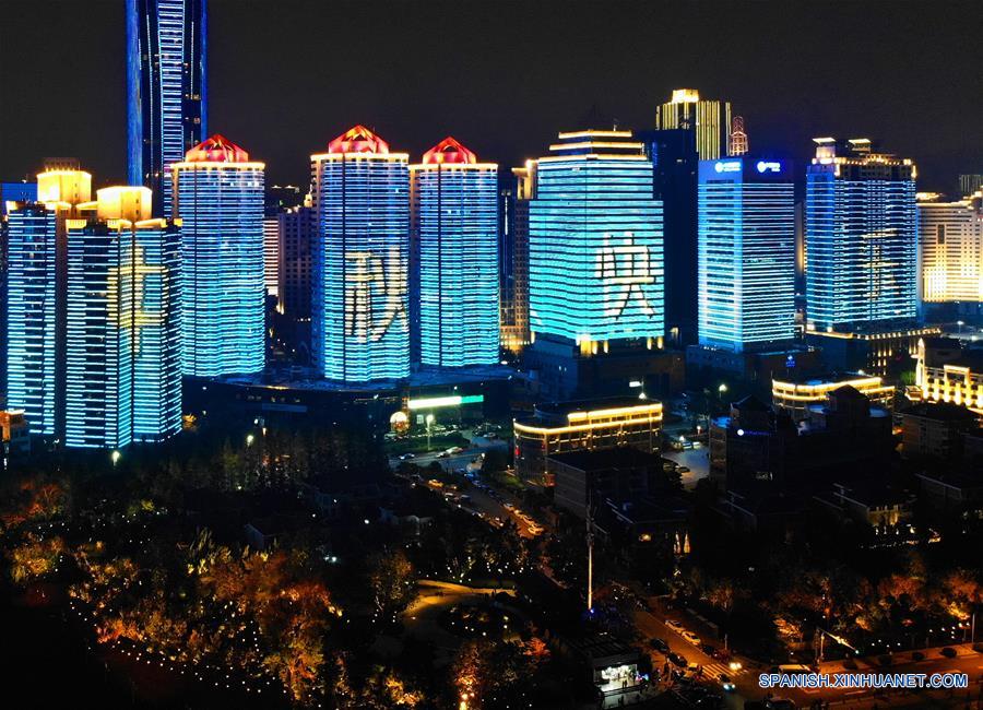 SHANDONG, noviembre 15, 2018 (Xinhua) -- Imagen del 22 de septiembre de 2018, de una vista aérea del paisaje nocturno de la Bahía Fushan, en Qingdao, en la provincia de Shandong, en el este de China. La inversión en activos fijos (IAF) de China subió un 5.7 por ciento en los primeros diez meses de este a?o, frente al 5.4 por ciento registrado durante el periodo enero-septiembre, según estadísticas oficiales reveladas el miércoles. (Xinhua/Li Ziheng)
