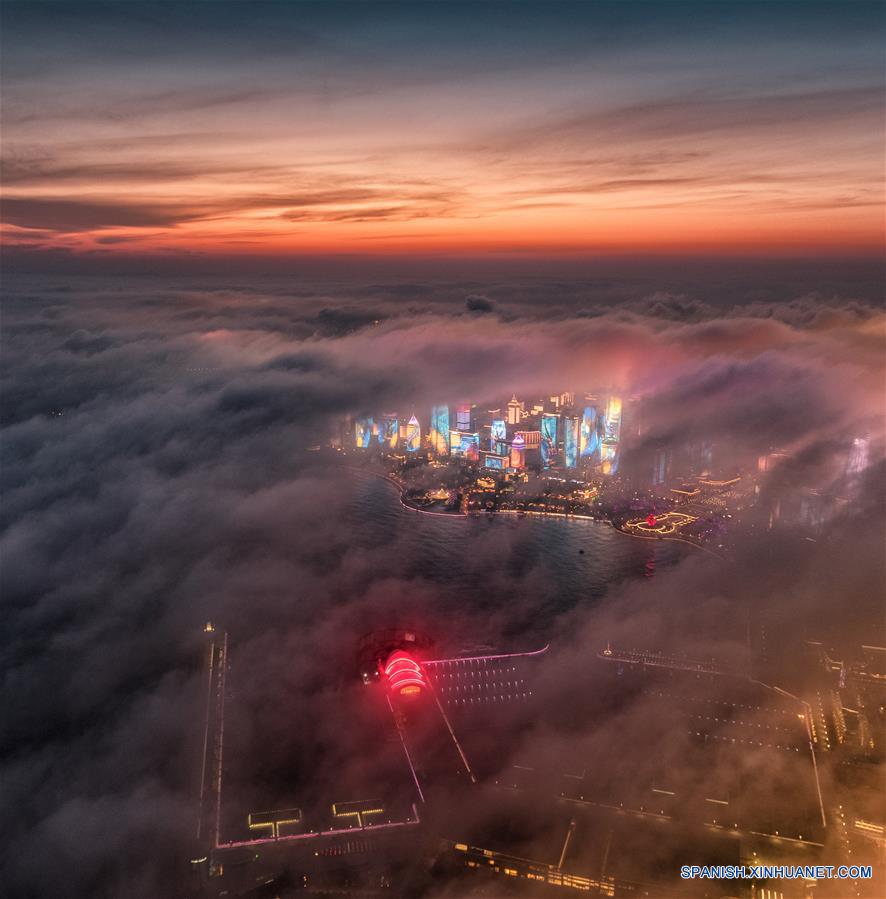 SHANDONG, noviembre 15, 2018 (Xinhua) -- Imagen del 20 de abril de 2018, de niebla flotando sobre Qingdao, en la provincia de Shandong, en el este de China. La inversión en activos fijos (IAF) de China subió un 5.7 por ciento en los primeros diez meses de este a?o, frente al 5.4 por ciento registrado durante el periodo enero-septiembre, según estadísticas oficiales reveladas el miércoles. (Xinhua/Lu Hui)