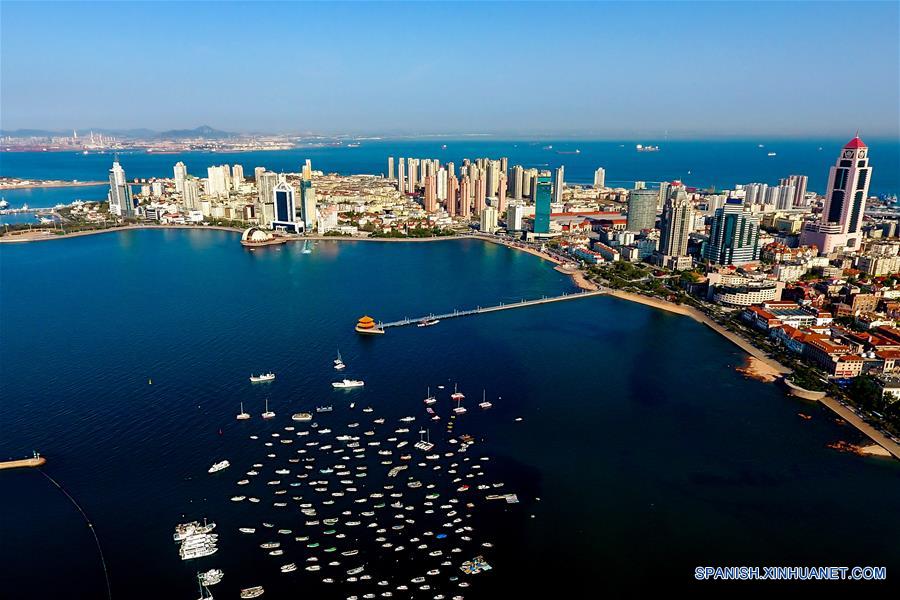 SHANDONG, noviembre 15, 2018 (Xinhua) -- Imagen del 4 de mayo de 2018, de una vista aérea de Muelle Zhanqiao en la Bahía Fushan, en Qingdao, en la provincia de Shandong, en el este de China. La inversión en activos fijos (IAF) de China subió un 5.7 por ciento en los primeros diez meses de este a?o, frente al 5.4 por ciento registrado durante el periodo enero-septiembre, según estadísticas oficiales reveladas el miércoles. (Xinhua/Guo Xulei)