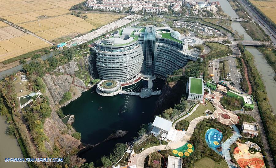 SHANGHAI, 17 nov (Xinhua) -- Un hotel de 88 metros de profundidad, construido verticalmente en una cantera subterránea con agua en la municipalidad oriental china de Shanghai, fue presentado oficialmente la semana pasada.