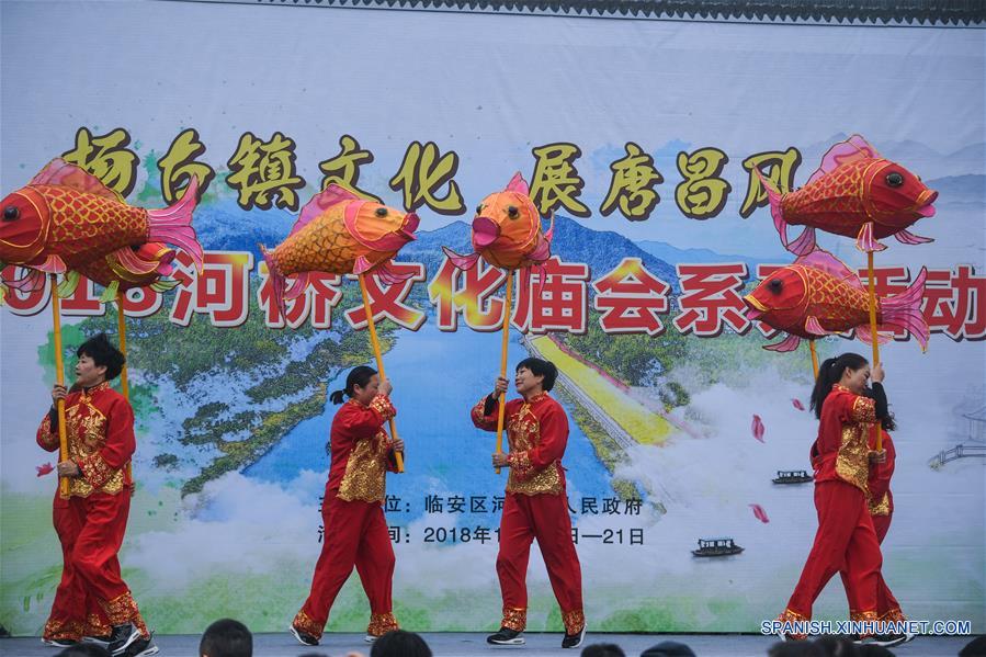Personas juegan con linternas de peces durante una feria de templo en el municipio Heqiao de Hanzghou, capital de la provincia de Zhejiang, en el este de China, el 19 de noviembre de 2018. La feria del templo se llevó a cabo para mostrar la cultura tradicional en la ciudad antigua de Heqiao, que tiene una historia de más de 1,300 a?os. (Xinhua/Xu Yu)