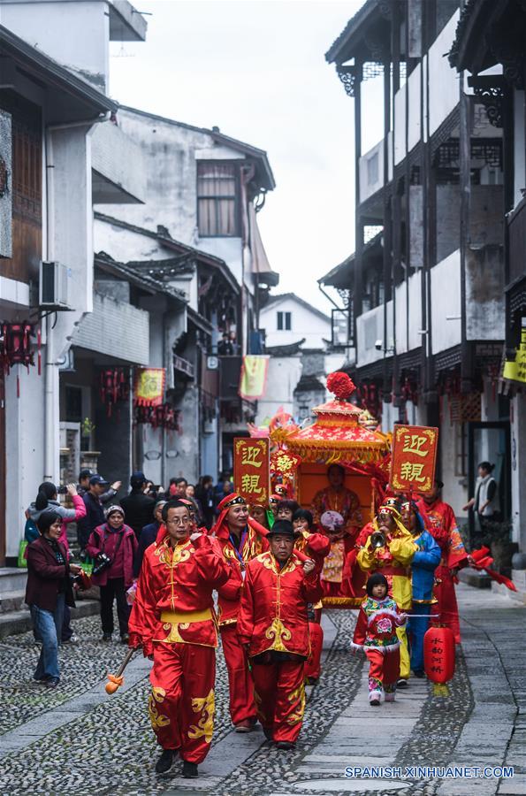 ZHEJIANG, noviembre 19, 2018 (Xinhua) -- Personas participan durante un desfile de una feria de templo en el municipio Heqiao de Hanzghou, capital de la provincia de Zhejiang, en el este de China, el 19 de noviembre de 2018. La feria del templo se llevó a cabo para mostrar la cultura tradicional en la ciudad antigua de Heqiao, que tiene una historia de más de 1,300 a?os. (Xinhua/Xu Yu)