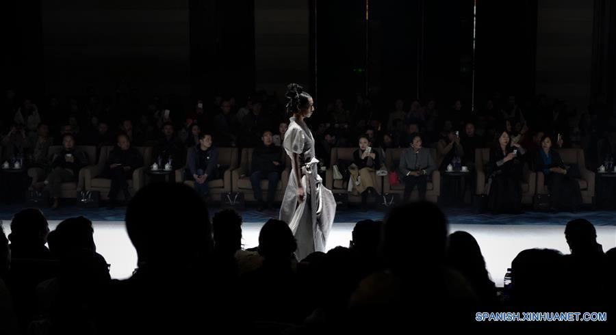 Imagen del 18 de noviembre de 2018 de una modelo presentando una creación dise?ada por Aj Namo, una dise?adora de moda del grupo étnico tibetano, durante un desfile de moda en Lhasa, en la Región Autónoma del Tibet, en el suroeste de China. (Xinhua/Purbu Zhaxi)