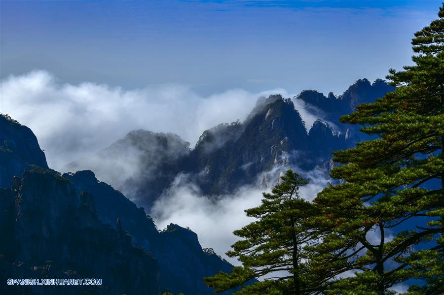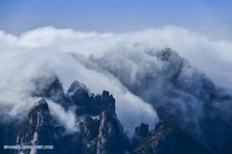 ANHUI, noviembre 20, 2018 (Xinhua) -- Vista de las nubes desplazándose a la deriva después de la lluvia sobre el Area Escénica de Huangshan, provincia de Anhui, en el este de China, el 20 de noviembre de 2018. (Xinhua/Shui Congze)