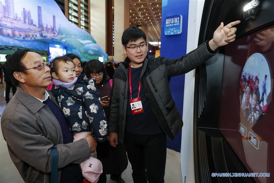 BEIJING, noviembre 20, 2018 (Xinhua) -- Visitantes interactúan con un proyecto experimental y posan durante una gran exposición para conmemorar el 40 aniversario de la reforma y apertura de China, en el Museo Nacional de China, en Beijing, capital de China, el 20 de noviembre de 2018. (Xinhua/Shen Bohan)