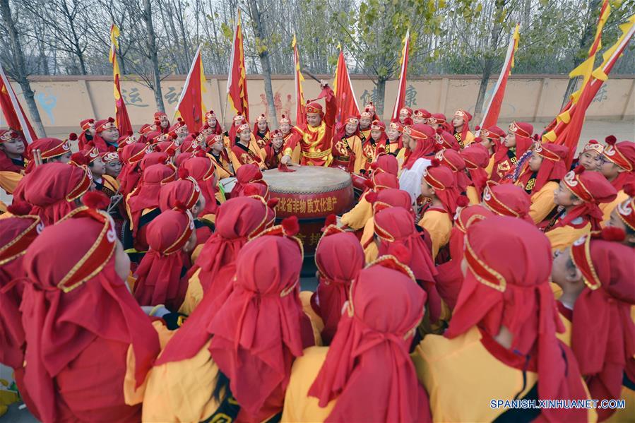 HEBEI, noviembre 21, 2018 (Xinhua) -- El artista popular Wang Guoqiang (c) muestra sus habilidades para tocar el tambor en la Escuela Primaria Changxin, en la ciudad de Xingtai, provincia de Hebei, en el norte de China, el 21 de noviembre de 2018. Los ni?os tuvieron la oportunidad de aprender música folclórica en la escuela como un esfuerzo para enriquecer la vida escolar y promover la cultura tradicional. (Xinhua/Chen Lei)
