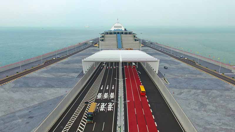 El tráfico fluye a través de un entrada de una sección subacuática del puente Hong Kong-Zhuhai-Macao, 24 de octubre del 2018, fecha de su apertura. [Foto: Xinhua]