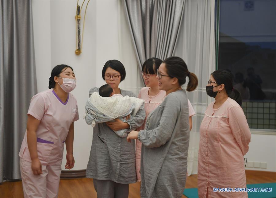 FUJIAN, noviembre 22, 2018 (Xinhua) -- Imagen del 21 de noviembre de 2018 de empleadas y nuevas madres conversando, en un centro de atención de maternidad, en la ciudad de Shishi, provincia de Fujian, en el sureste de China. Es una tendencia que las nuevas madres reserven espacio en un centro de atención de maternidad para pasar su tradicional "sentarse el mes" en Shishi. "Zuo yuezi" (sentarse el mes) es un ritual posparto observado por la mayoría de las mujeres chinas. Para ayudar a las nuevas madres a recuperarse y asegurar su salud en el futuro, ellas deben pasar hasta un mes adentro con sus recién nacidos después de dar a luz, y siguen una serie de reglas que van desde la prohibición de lavarse el cabello hasta no comer alimentos fríos y sin aire acondicionado. Las nuevas madres creen que pueden obtener atención y orientación profesional en el centro de cuidados de maternidad para tener un "sentarse el mes" más cómodo. (Xinhua/Song Weiwei)