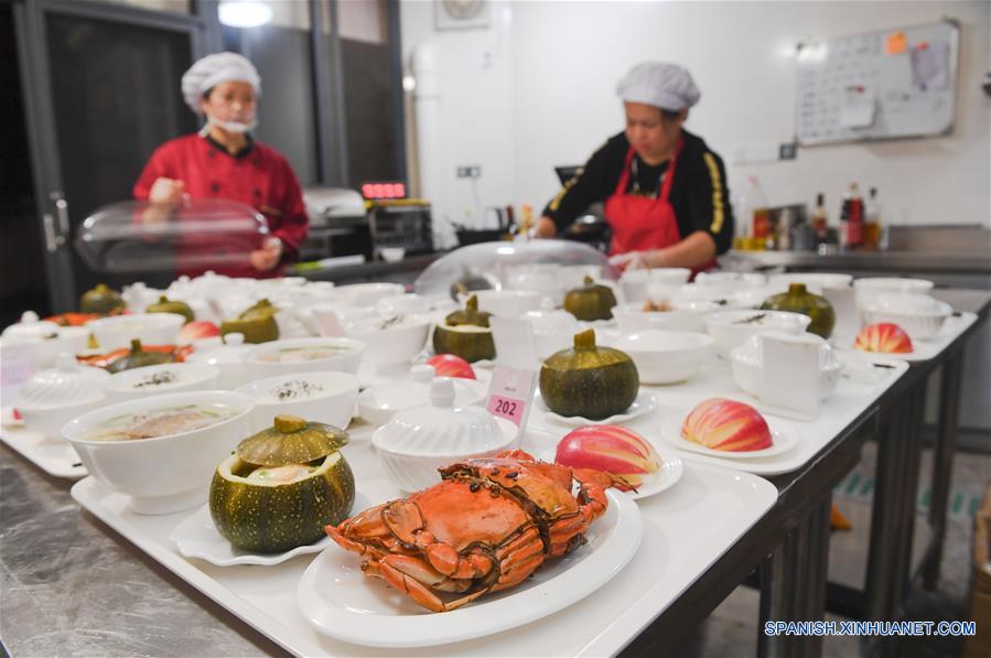 FUJIAN, noviembre 22, 2018 (Xinhua) -- Imagen del 21 de noviembre de 2018 de empleadas preparando alimentos para las nuevas madres, en un centro de atención de maternidad, en la ciudad de Shishi, provincia de Fujian, en el sureste de China. Es una tendencia que las nuevas madres reserven espacio en un centro de atención de maternidad para pasar su tradicional "sentarse el mes" en Shishi. "Zuo yuezi" (sentarse el mes) es un ritual posparto observado por la mayoría de las mujeres chinas. Para ayudar a las nuevas madres a recuperarse y asegurar su salud en el futuro, ellas deben pasar hasta un mes adentro con sus recién nacidos después de dar a luz, y siguen una serie de reglas que van desde la prohibición de lavarse el cabello hasta no comer alimentos fríos y sin aire acondicionado. Las nuevas madres creen que pueden obtener atención y orientación profesional en el centro de cuidados de maternidad para tener un "sentarse el mes" más cómodo. (Xinhua/Song Weiwei)