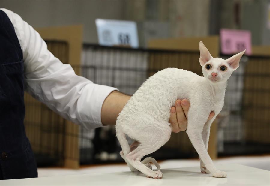 BOLONIA, noviembre 24, 2018 (Xinhua) -- Un juez maneja a un gatito durante la ronda de evaluación de la Exhibición de Gatos Americanos de Bolonia 2018, en Bolonia, Italia, el 24 de noviembre de 2018. Unos 170 gatos participan en la exhibición de gatos del 24 al 25 de noviembre. (Xinhua/Cheng Tingting)