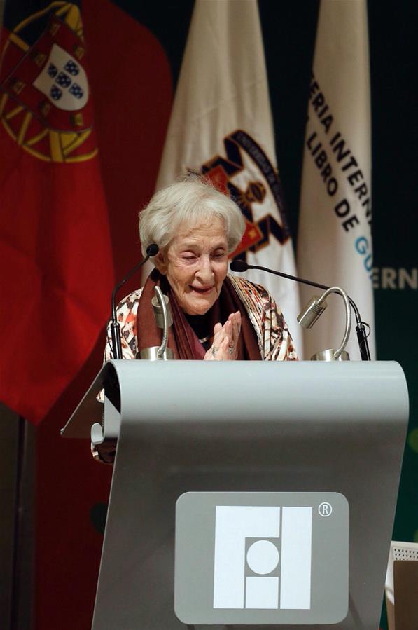 GUADALAJARA, noviembre 24, 2018 (Xinhua) -- La poeta uruguaya Ida Vitale, pronuncia un discurso durante el evento inaugural de la 32 Feria Internacional del Libro de Guadalajara (FILG), en la ciudad de Guadalajara, estado de Jalisco, México, el 24 de noviembre de 2018. La ganadora del Premio Cervantes 2018, la poeta uruguaya Ida Vitale, fue galardonada con el Premio FIL de Literatura en Lenguas Romances el sábado durante la inauguración de la FILG. En esta edición la feria tiene como invitado de honor a Portugal, de acuerdo con información de la prensa local. (Xinhua/Bernardette Gómez)