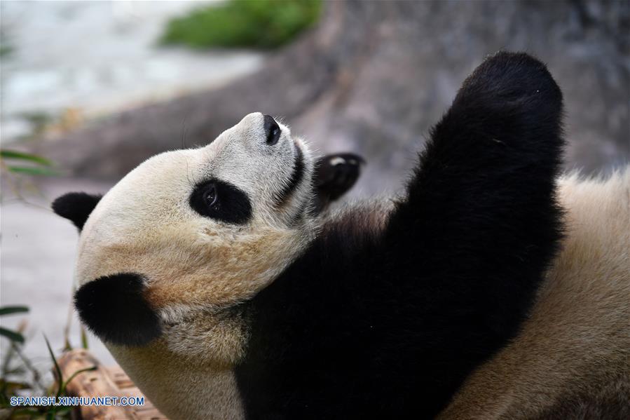 HAINAN, noviembre 25, 2018 (Xinhua) -- El panda gigante Shunshun hace su debut público en el Parque de Vida Salvaje Tropical y Jardín Botánico de Hainan, en Haikou, en la provincia de Hainan, en el sur de China, el 25 de noviembre de 2018. Los pandas gigantes Gonggong y Shunshun de la provincia de Sichuan llegaron a Hainan e hicieron su debut público después de adaptarse a su nuevo hogar. (Xinhua/Guo Cheng)