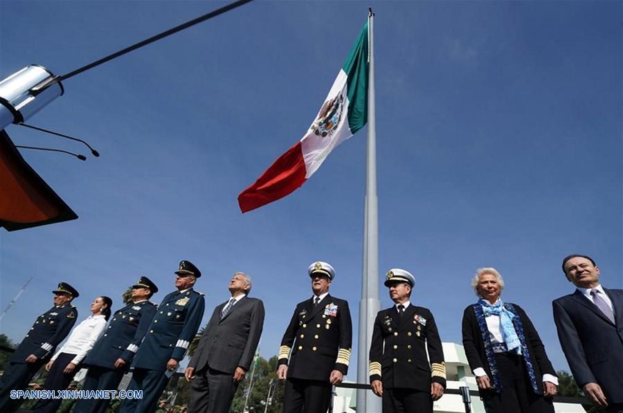 CIUDAD DE MEXICO, noviembre 25, 2018 (Xinhua) -- El presidente electo de México, Andrés Manuel López Obrador (5-i), participa junto al secretario de Defensa, Salvador Cienfuegos (4-i) y el secretario de Marina, Vidal Francisco Soberón (4-d), en un encuentro con militares, en el Campo Militar número 1 de la Secretaría de la Defensa Nacional (SEDENA), en la Ciudad de México, capital de México, el 25 de noviembre de 2018. De acuerdo con información de la prensa local, el presidente electo de México, Andrés Manuel López Obrador, se reunió con elementos de tropa de las Fuerzas Armadas y sus familiares, para brindar un mensaje y convocarlos para enfrentar el problema de la inseguridad en el país. (Xinhua/Str)