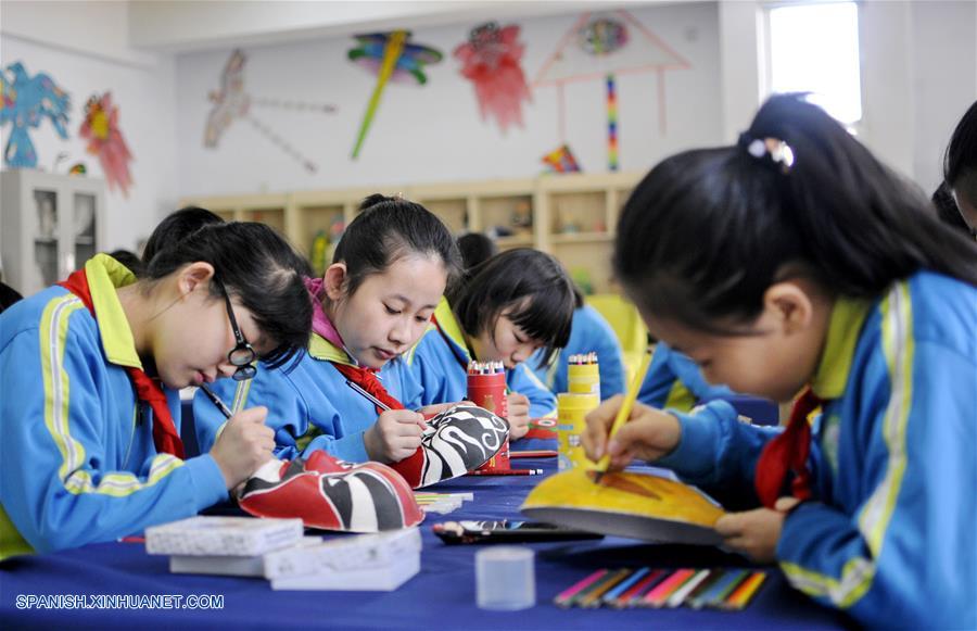 HEBEI, noviembre 28, 2018 (Xinhua) -- Estudiantes pintan máscaras de ópera tradicional en la Escuela Primaria Jialeyuan, en el distrito de Qiaodong de la ciudad de Xingtai, provincia de Hebei, en el norte de China, el 28 de noviembre de 2018. En los últimos a?os, el distrito de Qiaodong de la ciudad de Xingtai ha organizado varias actividades para dar a conocer la cultura tradicional en las escuelas para que los estudiantes sientan el encanto de la cultura tradicional y estimulen sus interés en el aprendizaje. (Xinhua/Mu Yu)