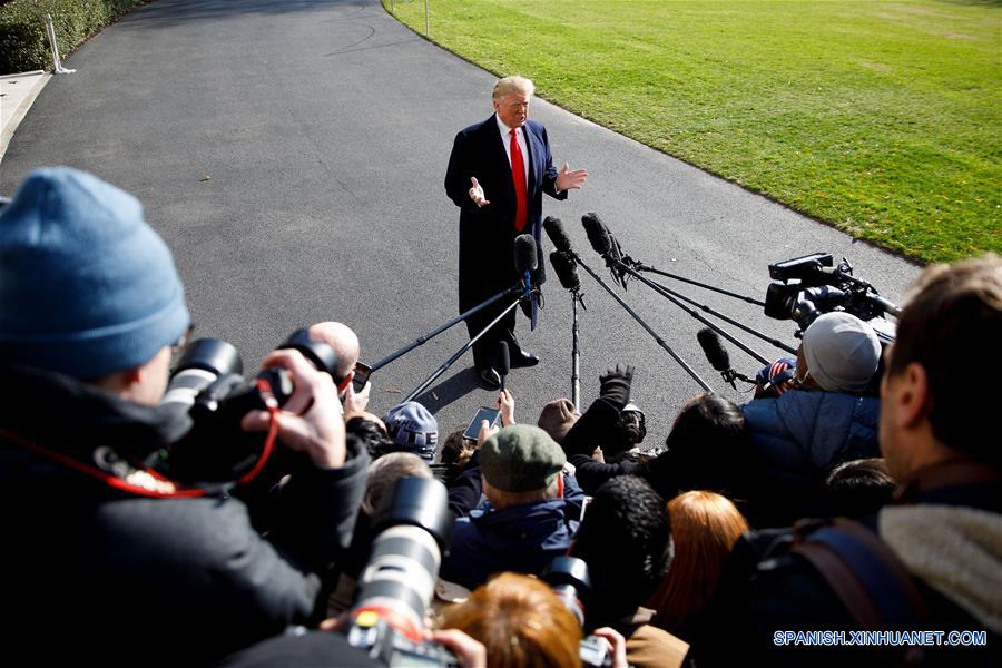 El presidente de Estados Unidos, Donald Trump, se dirige a los reporteros previo a salir hacia la cumbre del Grupo de los Veinte (G20) en Argentina desde la casa Blanca, en Washington D.C., Estados unidos, el 29 de noviembre de 2018. El presidente de Estados Unidos, Donald Trump, dijo el jueves que considerando la confrontación sin resolver entre Rusia y Ucrania, ha decidido que sería mejor cancelar la reunión prevista con el presidente ruso, Vladimir Putin. (Xinhua/Ting Shen)