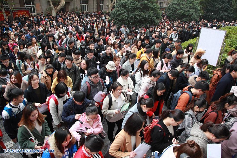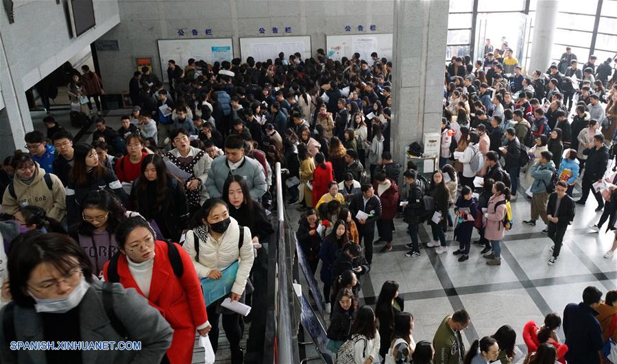 Candidatos se forman para tomar el examen nacional de funcionarios públicos en la Universidad Forestal de Nanjing, en Nanjing, capital de la provincia de Jiangsu, en el este de China, el 2 de diciembre de 2018. El examen nacional escrito de funcionarios públicos se llevó a cabo el domingo en todo el país. (Xinhua/Liu Jianhua)