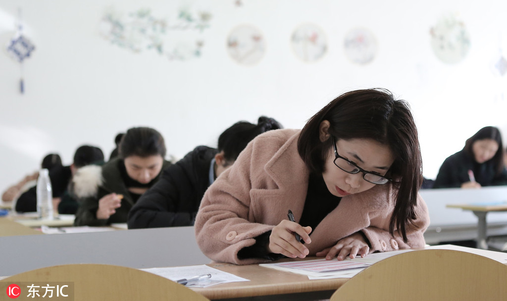 Los candidatos se examinan en la Universidad de Educación de Guizhou, Guiyang, Guizhou. Este domingo, un total de 920.000 personas realizaron el examen de funcionario público nacional para cubrir 14.500 posiciones vacantes, 2 de diciembre del 2018. [Foto: IC]