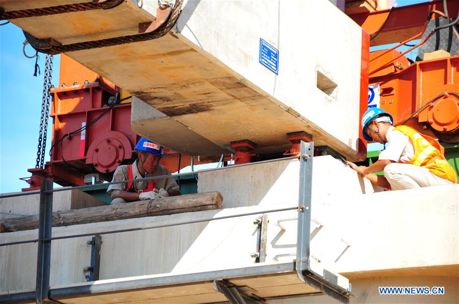 Con motivo del 43 aniversario del Día Nacional de la República Democrática Popular de Laos, se colocó la primera viga de hormigón en forma de T del ferrocarril China-Laos, Vientiane ,2 de diciembre del 2018. (Foto: Xinhua/ Zhang Jianhua)