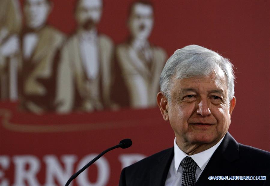 El presidente mexicano, Andrés Manuel López Obrador, participa durante una conferencia de prensa, en la Ciudad de México, capital de México, el 3 de diciembre de 2018. El presidente mexicano, Andrés Manuel López Obrador, aseguró el lunes que la relación entre México y Estados Unidos se mantendrá a partir del respeto mutuo. "Hemos mantenido una relación respetuosa con el presidente Donald Trump y vamos a continuar con esta relación de respeto", apuntó López Obrador, quien la ma?ana del lunes ofreció su primera rueda de prensa como mandatario, tras asumir la Presidencia mexicana el 1 de diciembre. (Xinhua/Fernando Ramírez)