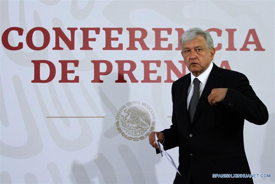 El presidente mexicano, Andrés Manuel López Obrador, participa durante una conferencia de prensa, en la Ciudad de México, capital de México, el 3 de diciembre de 2018. El presidente mexicano, Andrés Manuel López Obrador, aseguró el lunes que la relación entre México y Estados Unidos se mantendrá a partir del respeto mutuo. "Hemos mantenido una relación respetuosa con el presidente Donald Trump y vamos a continuar con esta relación de respeto", apuntó López Obrador, quien la ma?ana del lunes ofreció su primera rueda de prensa como mandatario, tras asumir la Presidencia mexicana el 1 de diciembre. (Xinhua/Fernando Ramírez)