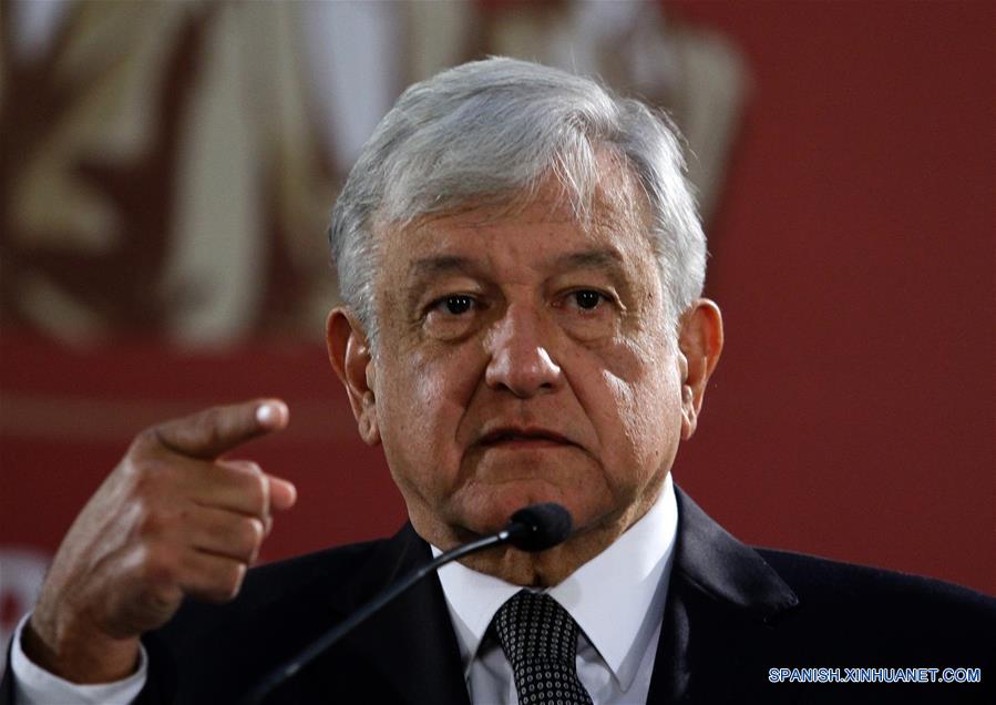 El presidente mexicano, Andrés Manuel López Obrador, participa durante una conferencia de prensa, en la Ciudad de México, capital de México, el 3 de diciembre de 2018. El presidente mexicano, Andrés Manuel López Obrador, aseguró el lunes que la relación entre México y Estados Unidos se mantendrá a partir del respeto mutuo. "Hemos mantenido una relación respetuosa con el presidente Donald Trump y vamos a continuar con esta relación de respeto", apuntó López Obrador, quien la ma?ana del lunes ofreció su primera rueda de prensa como mandatario, tras asumir la Presidencia mexicana el 1 de diciembre. (Xinhua/Fernando Ramírez)