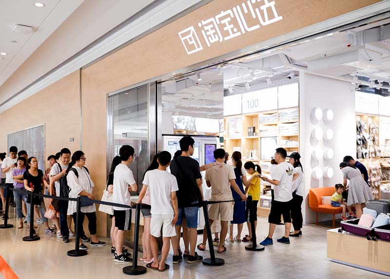 Los clientes hacen cola en una tienda Taobao Choice en Hangzhou, capital de la provincia de Zhejiang. [Por Niu Jing / China Daily]