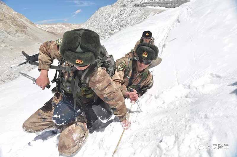 Los soldados patrullan la frontera. [Foto: cuenta del ejército en WeChat]