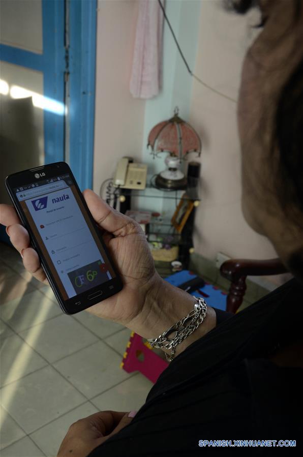 Una residente se conecta desde su vivienda al portal cubano Nauta Hogar para ingresar y navegar en el servicio de acceso a Internet a través de la red móvil, en el municipio de Habana Vieja, en La Habana, capital de Cuba, el 6 de diciembre de 2018. (Xinhua/Joaquín Hernández)
