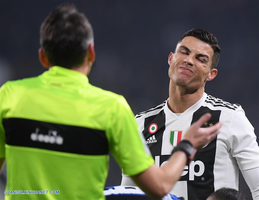 TURIN, diciembre 7, 2018 (Xinhua) -- El jugador Cristiano Ronaldo (d), de Juventus, reacciona durante el partido correspondiente a la Serie A italiana, ante Inter de Milan, en Turín, Italia, el 7 de diciembre de 2018. Juventus ganó el encuentro. (Xinhua/Alberto Lingria)