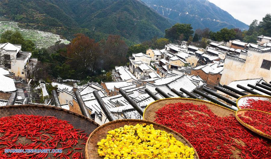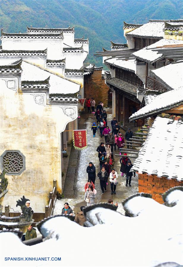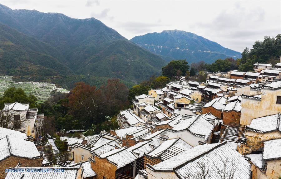 JIANGXI, diciembre 10, 2018 (Xinhua) -- Imagen del 9 de diciembre de 2018 del paisaje nevado en la aldea Huangling, en el condado Wuyuan, en la provincia de Jiangxi, en el este de China. (Xinhua/Hu Dunhuang)