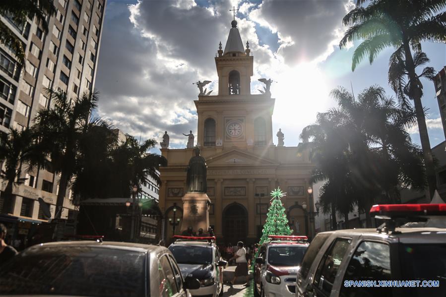SAO PAULO, diciembre 11, 2018 (Xinhua) -- Vehículos permanecen frente a la Catedral de Campinas, lugar donde se registró un tiroteo, en la ciudad de Campinas, en el estado de Sao Paulo, Brasil, el 11 de diciembre de 2018. Al menos cuatro personas fueron asesinadas el martes a balazos por un hombre, quien en plena misa les disparó dentro de la Catedral de Campinas, en el estado brasile?o de Sao Paulo, para luego suicidarse, informaron autoridades locales. El cuerpo de Bomberos de la localidad explicó que el incidente se registró el martes durante la misa del mediodía, cuando un hombre de alrededor de 35 a?os disparó por lo menos en 20 ocasiones contra los asistentes, para luego suicidarse cerca del altar. (Xinhua/Rahel Patrasso)