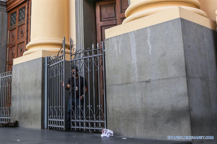 SAO PAULO, diciembre 11, 2018 (Xinhua) -- Un oficial de policía se retira de la Catedral de Campinas, lugar donde se registró un tiroteo, en la ciudad de Campinas, en el estado de Sao Paulo, Brasil, el 11 de diciembre de 2018. Al menos cuatro personas fueron asesinadas el martes a balazos por un hombre, quien en plena misa les disparó dentro de la Catedral de Campinas, en el estado brasile?o de Sao Paulo, para luego suicidarse, informaron autoridades locales. El cuerpo de Bomberos de la localidad explicó que el incidente se registró el martes durante la misa del mediodía, cuando un hombre de alrededor de 35 a?os disparó por lo menos en 20 ocasiones contra los asistentes, para luego suicidarse cerca del altar. (Xinhua/Rahel Patrasso)