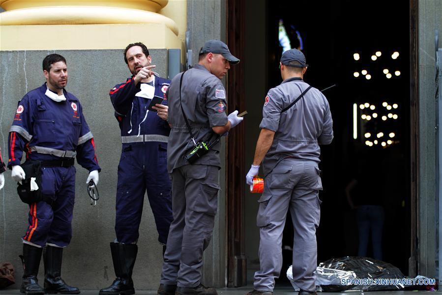 SAO PAULO, diciembre 11, 2018 (Xinhua) -- Imagen proveída por AGENCIA ESTADO de miembros de los cuerpos de rescate trabajando frente a la Catedral de Campinas, lugar donde se registró un tiroteo, en la ciudad de Campinas, en el estado de Sao Paulo, Brasil, el 11 de diciembre de 2018. Al menos cuatro personas fueron asesinadas el martes a balazos por un desconocido que ingresó disparando con dos armas de fuego a la Catedral de Campinas, durante una misa, y luego se suicidó. La tragedia fue perpetrada durante la misa del mediodía y el asesino disparó al menos 20 tiros, para luego suicidarse cerca del altar, tras enfrentar a los policías, informó un portavoz del departamento de bomberos citado por la "TV Globo". El vocero agregó que por el momento se desconoce el motivo del agresor. (Xinhua/Denny Cesare/CODIGO19/AGENCIA ESTADO)