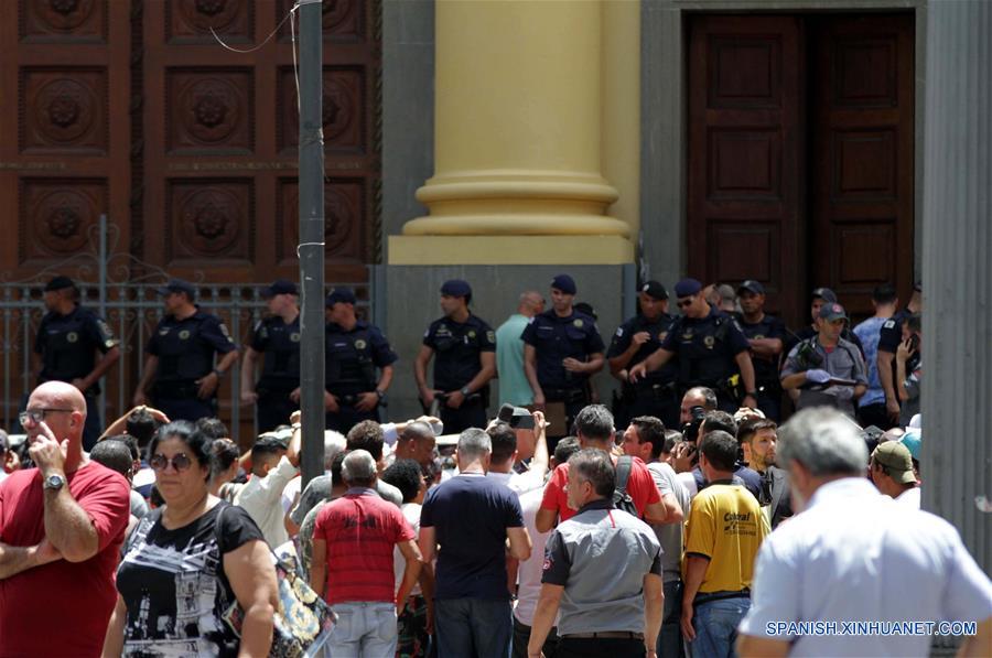 SAO PAULO, diciembre 11, 2018 (Xinhua) -- Imagen proveída por AGENCIA ESTADO de personas reuniéndose frente a la Catedral de Campinas, lugar donde se registró un tiroteo, en la ciudad de Campinas, en el estado de Sao Paulo, Brasil, el 11 de diciembre de 2018. Al menos cuatro personas fueron asesinadas el martes a balazos por un desconocido que ingresó disparando con dos armas de fuego a la Catedral de Campinas, durante una misa, y luego se suicidó. La tragedia fue perpetrada durante la misa del mediodía y el asesino disparó al menos 20 tiros, para luego suicidarse cerca del altar, tras enfrentar a los policías, informó un portavoz del departamento de bomberos citado por la "TV Globo". El vocero agregó que por el momento se desconoce el motivo del agresor. (Xinhua/Maycon Soldan/FOTOARENA/AGENCIA ESTADO)