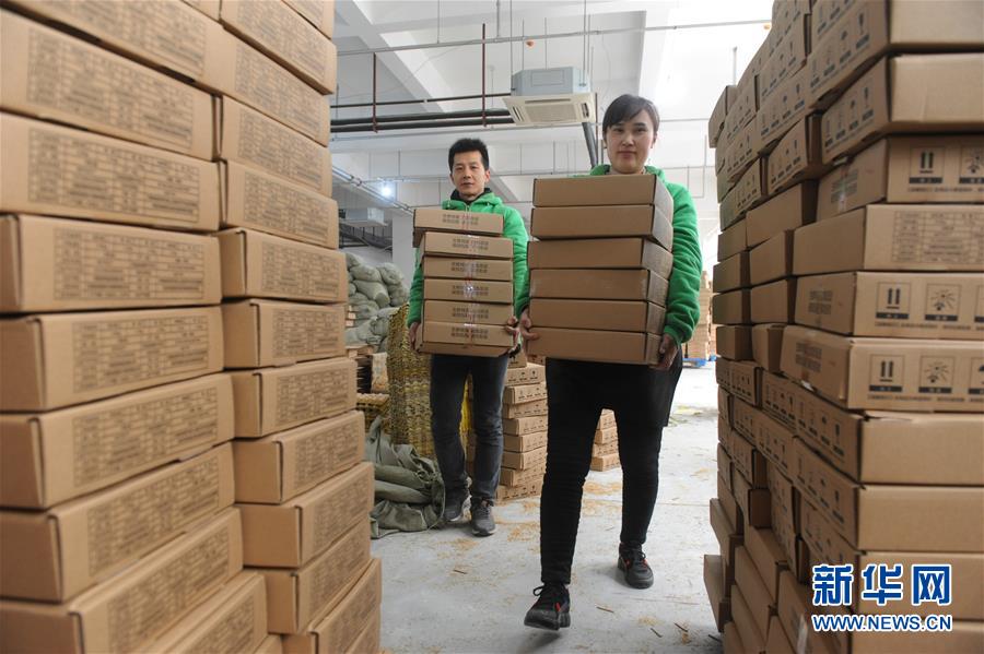 El 11 de diciembre, en el Parque Industrial de Comercio Electrónico Juvenil de Fuyang en la provincia de Anhui, los trabajadores de una empresa de comercio electrónico clasificaba las cajas de huevos y se preparaba para las ventas en línea. Agencia de Noticias Xinhua (foto de Wang Biao)