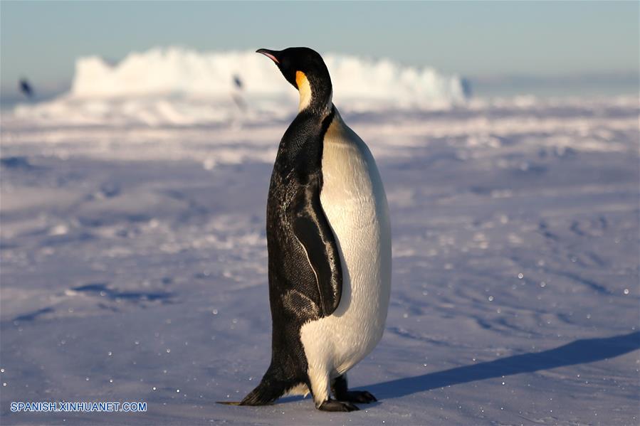 A BORDO DEL XUELONG, diciembre 10, 2018 (Xinhua) -- Imagen del 2 de diciembre de 2018 de un pingüino emperador cerca del rompehielos de investigación Xuelong de China, en la Antártida. El rompehielos de investigación Xuelong de China, también conocido como Dragón de Nieve, está ahora a 44 kilómetros de la estación Zhongshan. Las operaciones de descarga se llevaron a cabo una vez determinadas las rutas de transporte. (Xinhua/Liu Shiping)