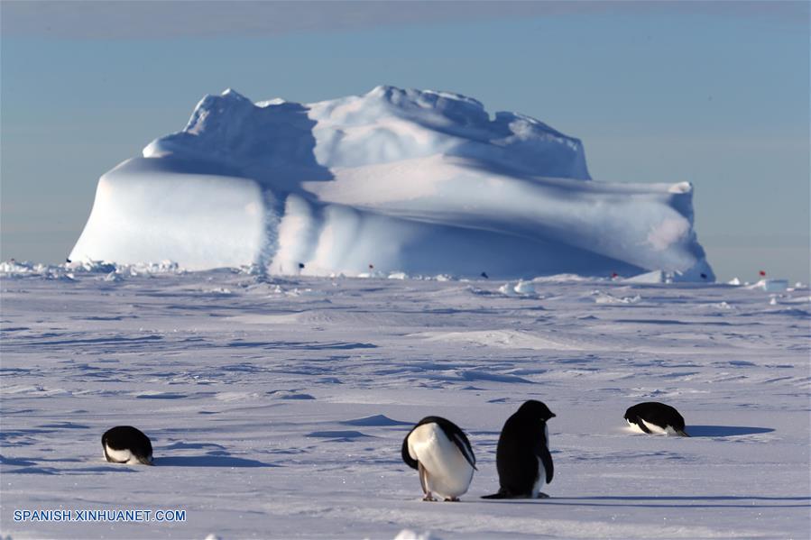 A BORDO DEL XUELONG, diciembre 10, 2018 (Xinhua) -- Imagen del 2 de diciembre de 2018 de pingüinos adelaida descansando cerca del rompehielos de investigación Xuelong de China, en la Antártida. El rompehielos de investigación Xuelong de China, también conocido como Dragón de Nieve, está ahora a 44 kilómetros de la estación Zhongshan. Las operaciones de descarga se llevaron a cabo una vez determinadas las rutas de transporte. (Xinhua/Liu Shiping)