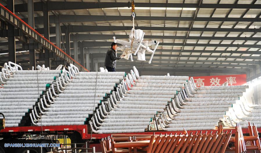 HEBEI, diciembre 12, 2018 (Xinhua) -- Un trabajador carga equipos deportivos y de acondicionamiento físico en una compa?ía de equipos deportivos, en el condado de Haixing de Cangzhou, provincia de Hebei, en el norte de China, el 12 de diciembre de 2018. El condado de Haixing experimentó un sólido desarrollo en su industria de equipos deportivos bajo el apoyo del gobierno, lo que ayudó a formar un clúster industrial con sus sectores de investigación y desarrollo, fabricación y ventas. El condado ahora cuenta con unos 100 fabricantes de equipos deportivos con un valor de producción anual de más de 1,200 millones de yuanes (170 millones de dólares estadounidenses). Sus productos son vendidos a los mercados tanto locales como del extranjero. (Xinhua/Wu Jianlu)
