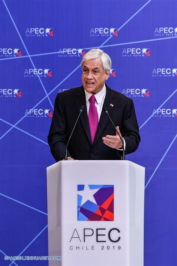 SANTIAGO, diciembre 12, 2018 (Xinhua) -- El presidente de Chile, Sebastián Pi?era, pronuncia un discurso durante la ceremonia de lanzamiento de la cumbre del Foro de Cooperación Económica Asia-Pacífico (APEC) Chile 2019, en el Palacio de La Moneda, en la cuidad de Santiago, capital de Chile, el 12 de diciembre de 2018. De acuerdo con información de la prensa local, Sebastián Pi?era encabezó el miércoles el lanzamiento del foro APEC Chile 2019, el cual abarcará más de 200 reuniones y tendrá como uno de los grandes ejes el hacerse cargo de la evolución tecnológica. (Xinhua/Jorge Villegas)