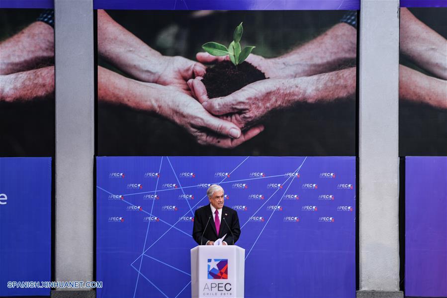 SANTIAGO, diciembre 12, 2018 (Xinhua) -- El presidente de Chile, Sebastián Pi?era, pronuncia un discurso durante la ceremonia de lanzamiento de la cumbre del Foro de Cooperación Económica Asia-Pacífico (APEC) Chile 2019, en el Palacio de La Moneda, en la cuidad de Santiago, capital de Chile, el 12 de diciembre de 2018. De acuerdo con información de la prensa local, Sebastián Pi?era encabezó el miércoles el lanzamiento del foro APEC Chile 2019, el cual abarcará más de 200 reuniones y tendrá como uno de los grandes ejes el hacerse cargo de la evolución tecnológica. (Xinhua/Jorge Villegas)