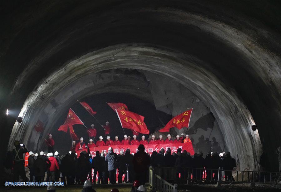 BEIJING, diciembre 13, 2018 (Xinhua) -- Trabajadores laboran en el túnel Nuevo Badaling de la vía de tren de alta velocidad Beijing-Zhangjiakou, en Beijing, capital de China, el 13 de diciembre de 2018. Los trabajadores han logrado un importante logro en el proyecto de la vía de tren de alta velocidad Beijing-Zhangjiakou, luego de que cavaron a través del túnel Nuevo Badaling, una parte fundamental de la línea, el jueves. (Xinhua/Xing Guangli)