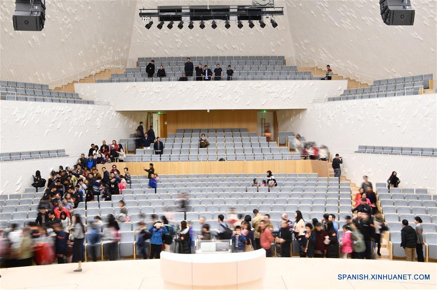 FUZHOU, diciembre 16, 2018 (Xinhua) -- Residentes visitan la sala de conciertos del Centro Cultural Artístico del Estrecho de Fuzhou, en Fuzhou, en la provincia de Fujian, en el sureste de China, el 16 de diciembre de 2018. El centro llevó a cabo el domingo actividades de día abierto. (Xinhua/Jiang Kehong)