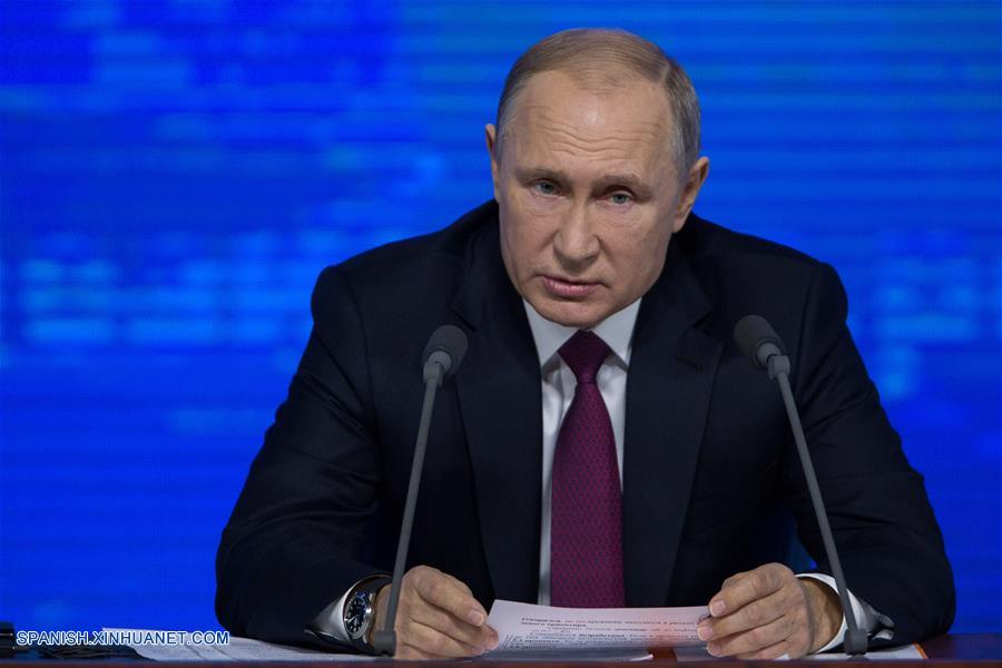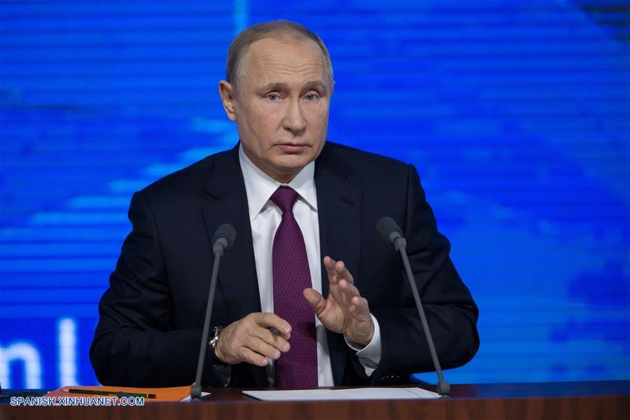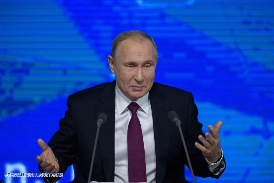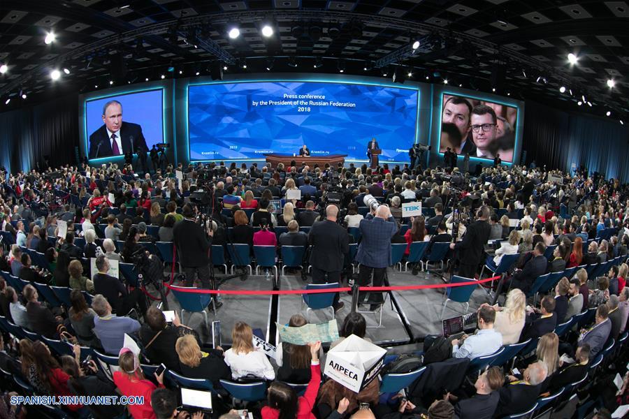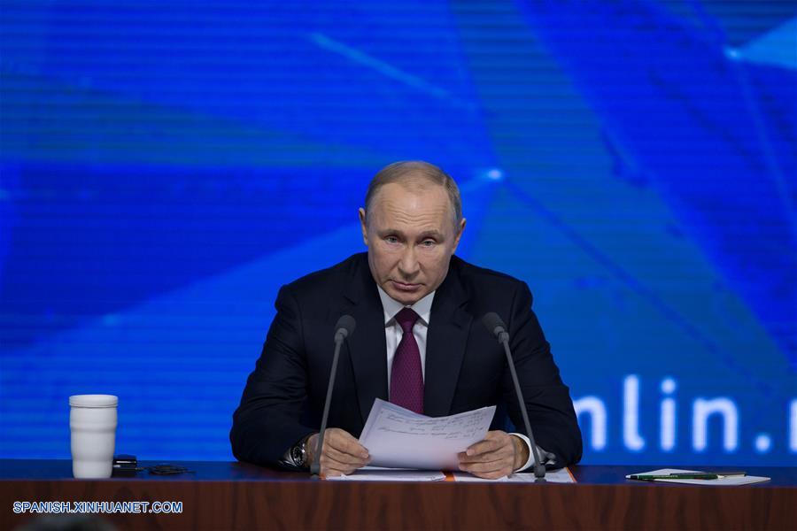 MOSCU, diciembre 20, 2018 (Xinhua) -- El presidente de Rusia, Vladimir Putin, asiste a su conferencia de prensa anual, en Moscú, Rusia, el 20 de diciembre de 2018. (Xinhua/Bai Xueqi)