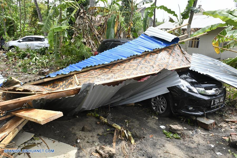 BANTEN, diciembre 23, 2018 (Xinhua) -- Un vehículo permanece en medio de los escombros luego de que un tsunami alcanzara el Estrecho de la Sonda, en Pandeglang, provincia de Bantén, Indonesia, el 23 de diciembre de 2018. Las muertes por un tsunami ocasionado por una erupción volcánica en Indonesia llegaron a 222 con al menos 843 heridos, informó el domingo la agencia para el manejo de desastres. La erupción del volcán Anak Krakatau, o Child of Krakatoa en inglés, provocó el sábado deslizamientos submarinos de tierra ocasionando el aumento del nivel del mar el sábado en la noche, de acuerdo con la agencia de meteorología y geofísica. El tsunami destruyó 556 casas, nueve hoteles y 360 barcos en el distrito de Pandeglang, el área más afectada, así como la provincia de Serang of Bantén y el distrito de Lampung Selatan en la provincia de Lampung, dijo el vocero de la agencia nacional para el manejo de desastres, Sutopo Purwo Nugroho. (Xinhua/Wahyu Wening)