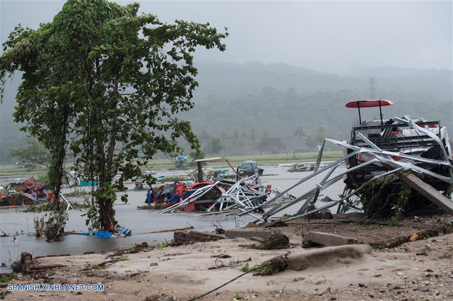 BANTEN, diciembre 23, 2018 (Xinhua) -- Vehículos permanecen en medio de los escombros luego de que un tsunami alcanzara el Estrecho de la Sonda, en Pandeglang, provincia de Bantén, Indonesia, el 23 de diciembre de 2018. Las muertes por un tsunami ocasionado por una erupción volcánica en Indonesia llegaron a 222 con al menos 843 heridos, informó el domingo la agencia para el manejo de desastres. La erupción del volcán Anak Krakatau, o Child of Krakatoa en inglés, provocó el sábado deslizamientos submarinos de tierra ocasionando el aumento del nivel del mar el sábado en la noche, de acuerdo con la agencia de meteorología y geofísica. El tsunami destruyó 556 casas, nueve hoteles y 360 barcos en el distrito de Pandeglang, el área más afectada, así como la provincia de Serang of Bantén y el distrito de Lampung Selatan en la provincia de Lampung, dijo el vocero de la agencia nacional para el manejo de desastres, Sutopo Purwo Nugroho. (Xinhua/Veri Sanovri)