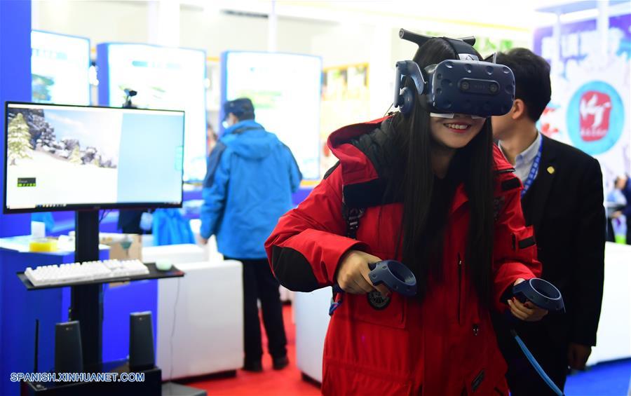 JILIN, diciembre 23, 2018 (Xinhua) -- Una mujer prueba un dispositivo de Realidad Virtual (RV), durante la tercera Exposición de la Industria de Hielo y Nieve de Jilin de China, en Changchun, capital de la provincia de Jilin, en el noreste de China, el 23 de diciembre de 2018. La Exposición de la Industria de Hielo y Nieve de Jilin de China comenzó en el Centro Internacional de Convenciones y Exposiciones de Changchun el domingo. (Xinhua/Lin Hong)