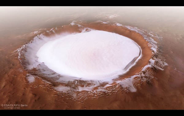 París, 24/12/2018(El Pueblo en Línea) - La Agencia Espacial Europea (ESA, por sus siglas en inglés) compartió la instantánea del "paraíso invernal en Marte", un cráter de hielo llamado Korolev, destaca RT.