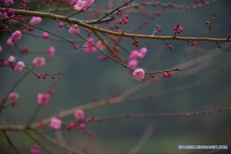HUBEI, diciembre 24, 2018 (Xinhua) -- Flores de ciruelo crecen en el condado Xuan'en de la Prefectura Autónoma Tujia y Miao de Enshi, en la provincia de Hubei, en el centro de China, el 24 de diciembre de 2018. (Xinhua/Wang Jun)
